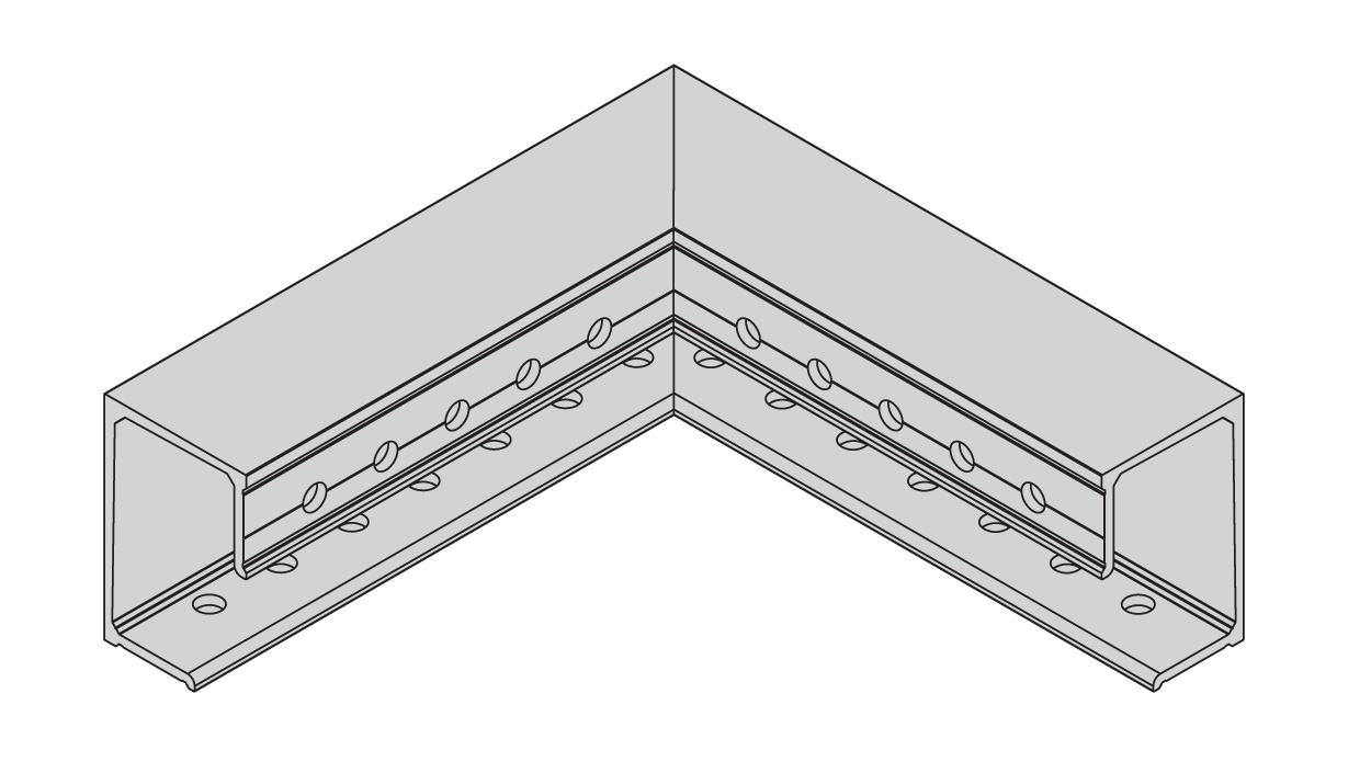 The point where two columns meet, which may require reinforcement or finishing for structural and visual purposes.